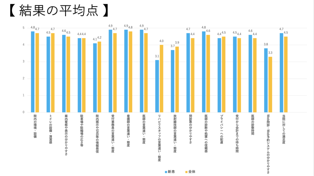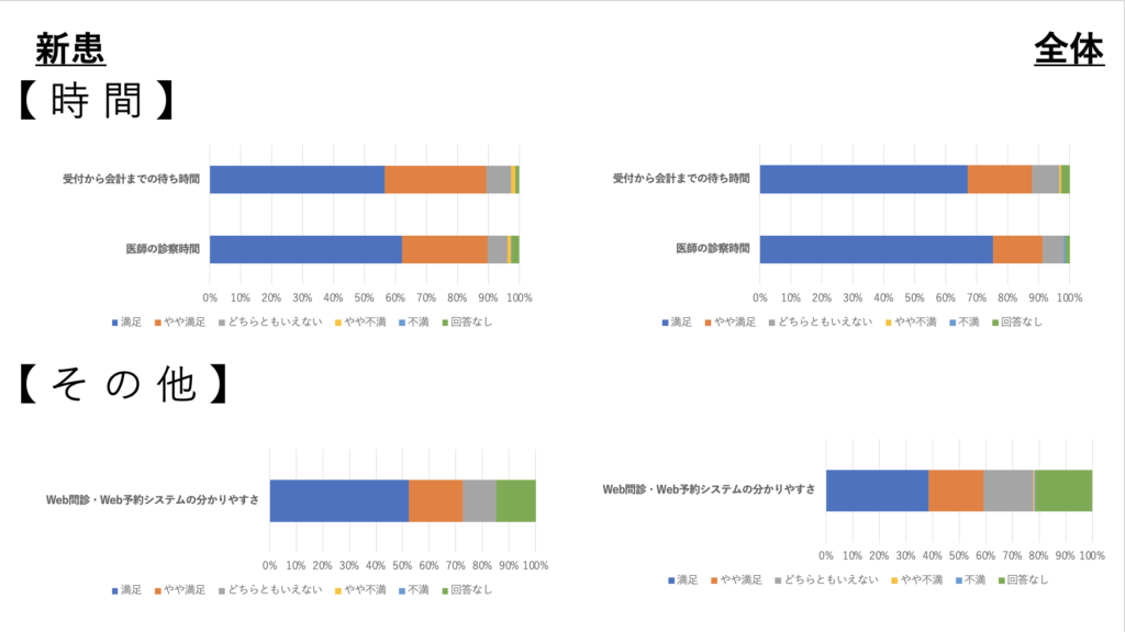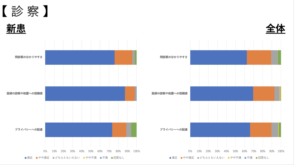 ② 診察については新患の方のプライバシーの配慮についてやや低い傾向でしたので、希望される方には問診コーナーを使用していきたいと思います。