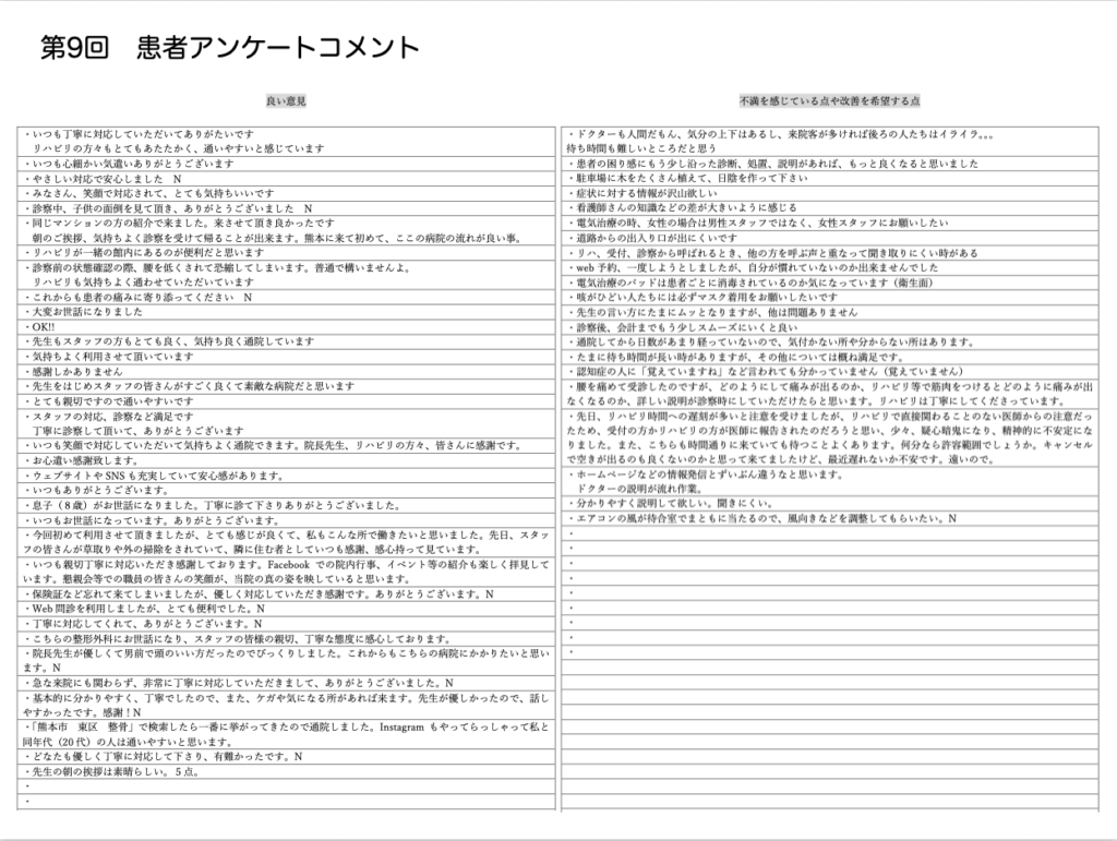 当院では開院以来毎年行っておりますアンケート調査を、令和7年6月9日から6月21日まで2週間にわたり外来を受診された患者さんへお願い致しました。