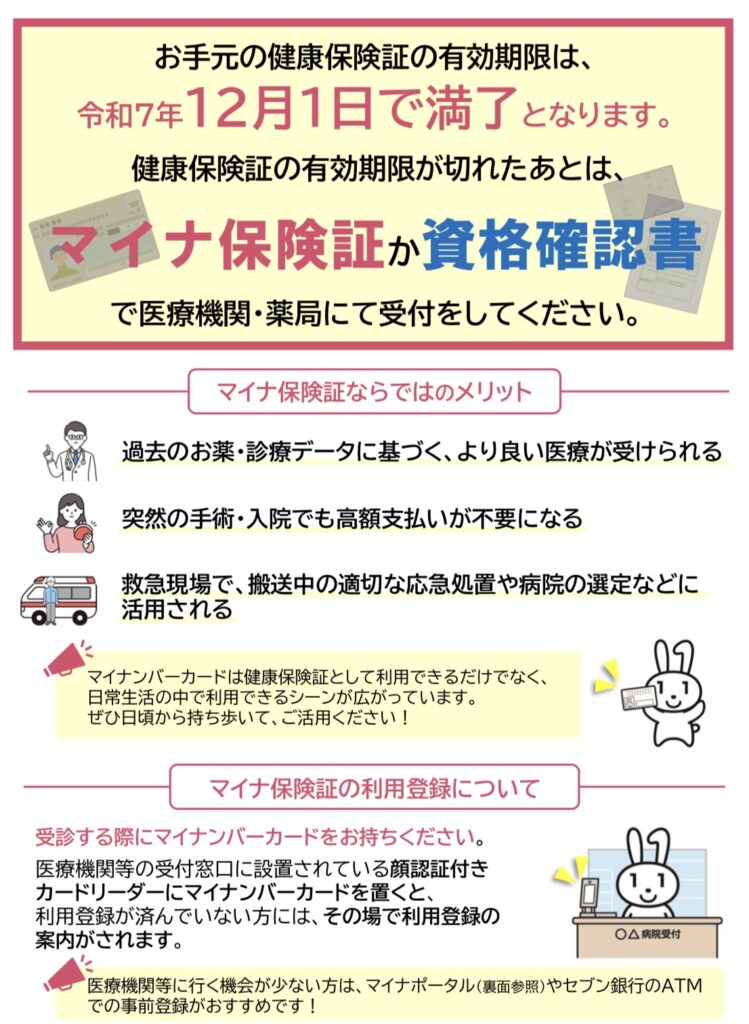 2025年12月1日に全ての健康保険証の有効期限が切れることに伴い、12月2日以降は従来の健康保険証が利用できなくなります。