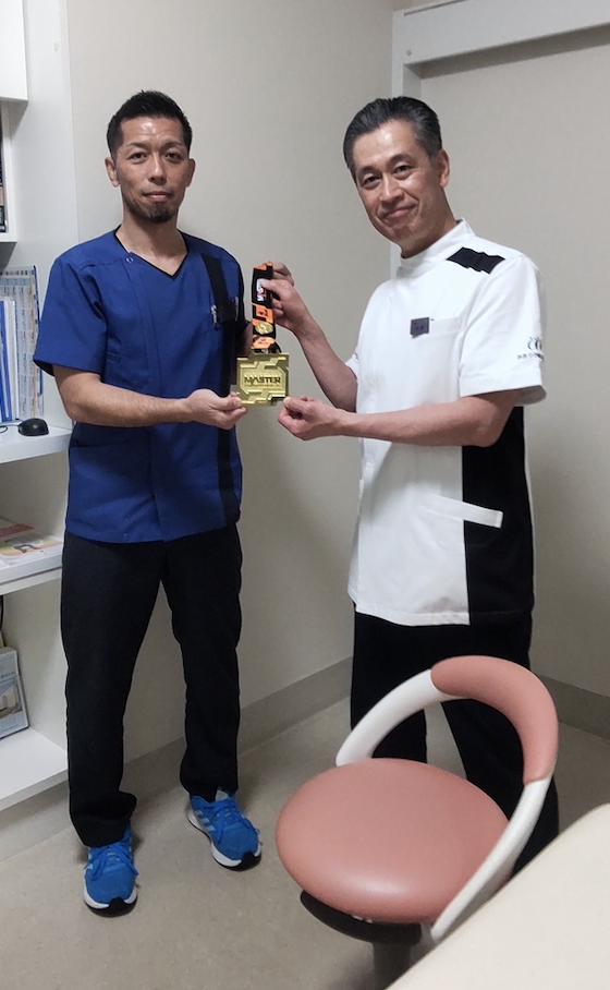 日頃はリハビリで運動の指導をしながら、自らも体を鍛えている努力の賜物ですね。心から賛辞を送りたいと思います。おめでとうございました。